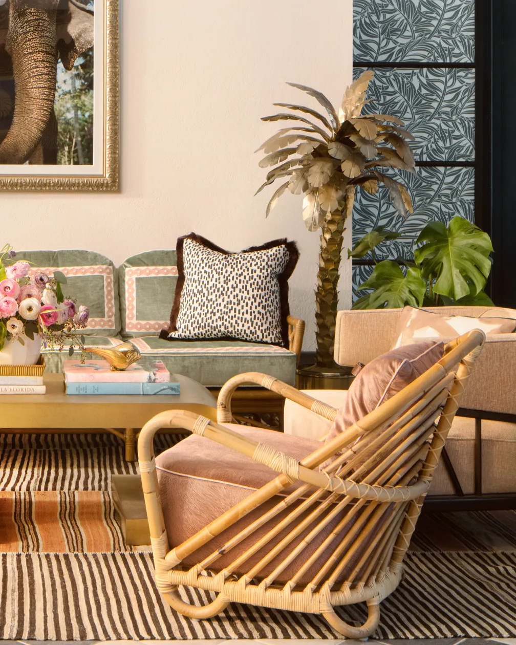 The cushions became the next battleground. Fulk envisioned a waterfall-edge back pillow that would drape elegantly over the rattan frame. “We went through five handmade prototypes,” Freeman says. “Each one was physically built, photographed, and shipped for approval. Nothing happened on the computer; it was pure craft in the middle of a global shutdown.”