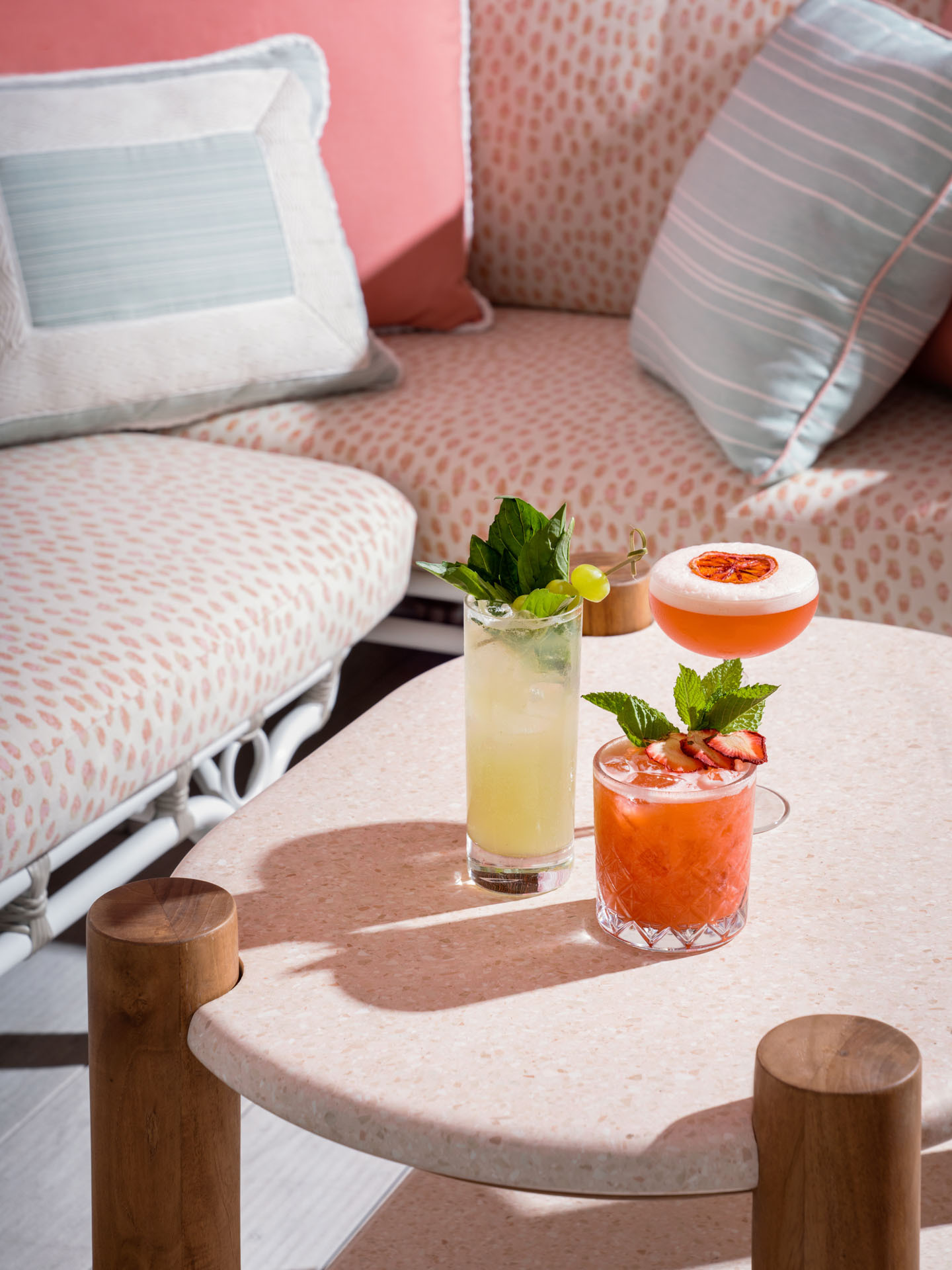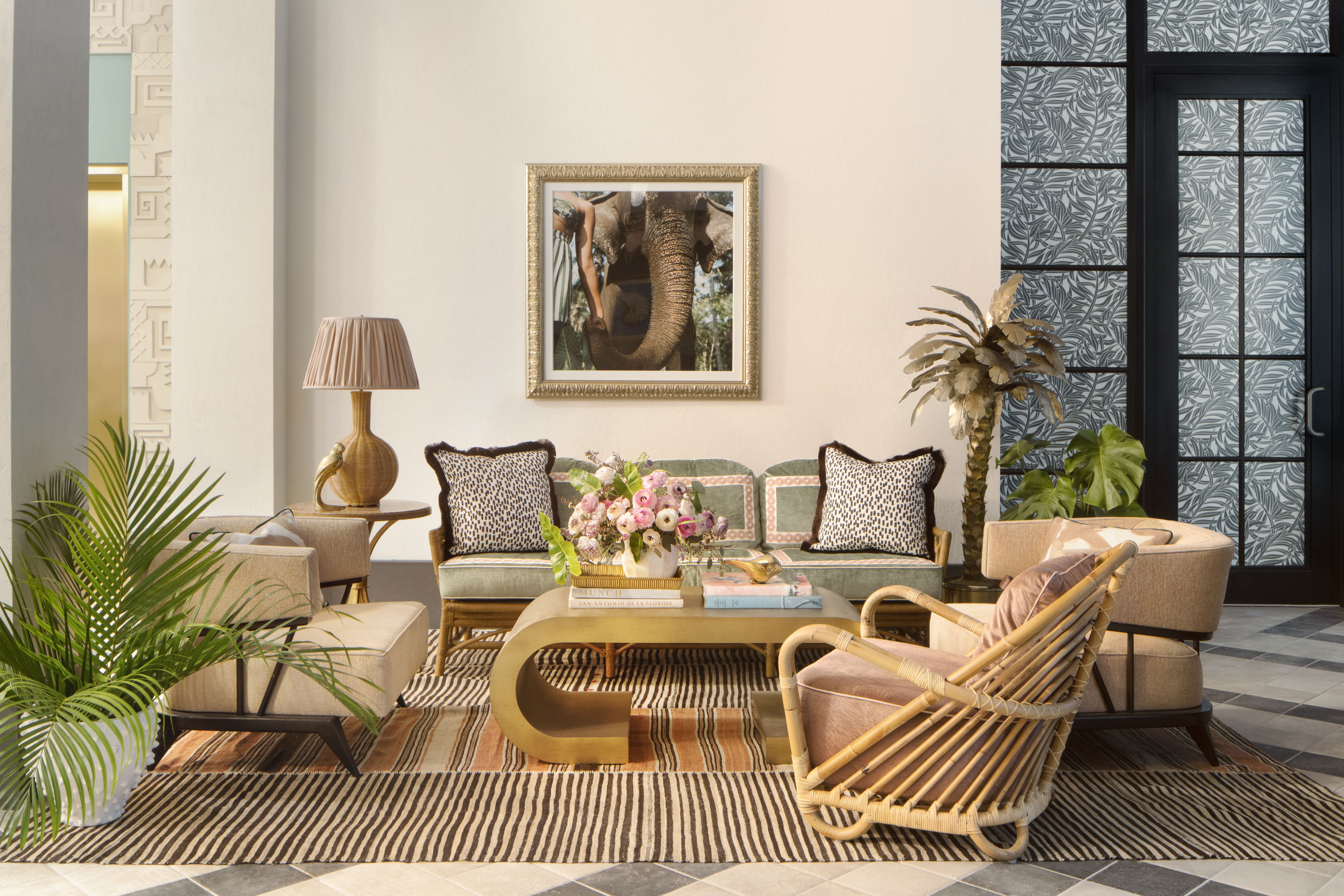 What guests see today — scalloped mint canopies, pastel cabanas, and carefree loungers — hides a labor-intensive, two-year process of furniture customization that stretched across continents and through the height of COVID-19. At the heart of it was Designerie, asked to alter one of its most iconic pieces, the Belladonna sofa, long considered untouchable.